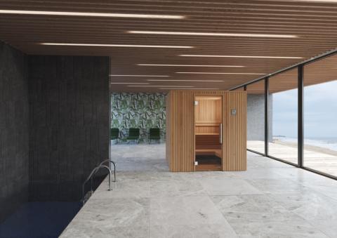This sauna is universal and unpretentious; the perfect place to rest. The minimalist style, cozy, dim lighting and closed front induce a genuinely reassuring atmosphere inside.