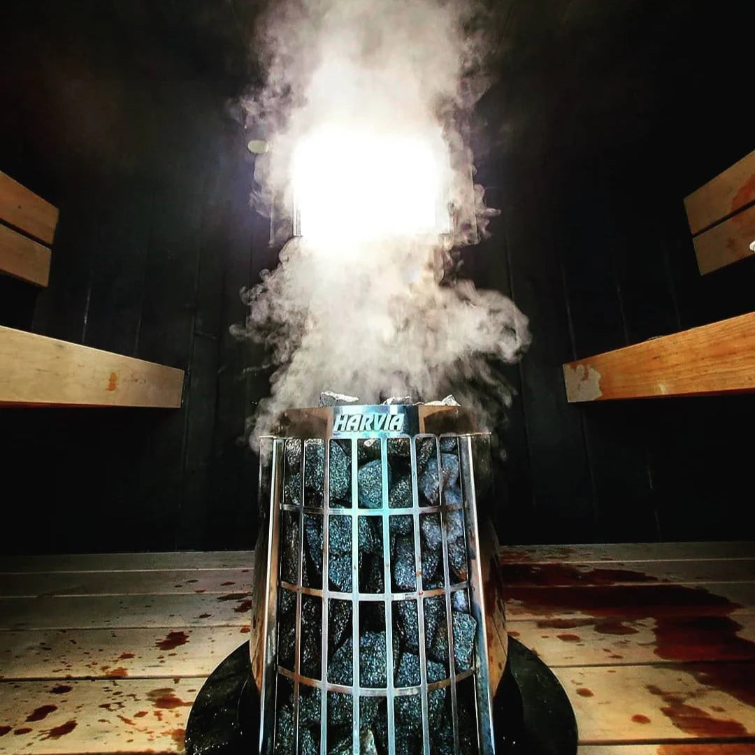 The Harvia Cilindro is a sleek pillar-type electric sauna heater that produces high-quality steam due to its large stone capacity. Its pillar design allows for flexibility in sauna layout, as the heater can be easily integrated into the bench or positioned in front of a glass wall for an attractive display. The heater has a partially open outer casing at the front, which enables users to benefit from a large stone surface and accommodate a large number of stones in a small space. With its grate-like outer shell, you can control the steam intensity: pouring water on the side produces a gentler steam, while pouring or dripping water directly on the top of the stones generates a more powerful steam.